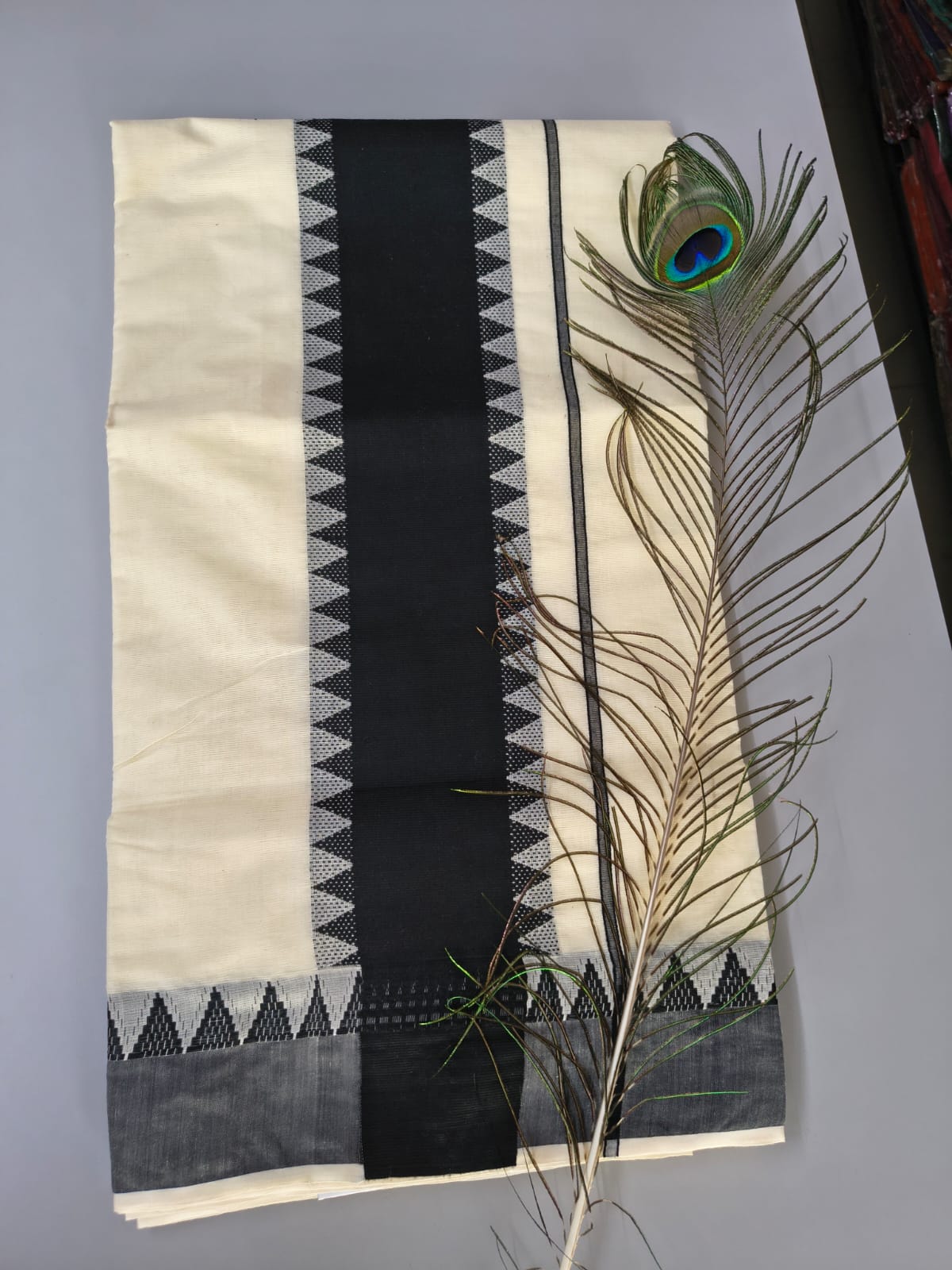 Kerala saree with zigzag border